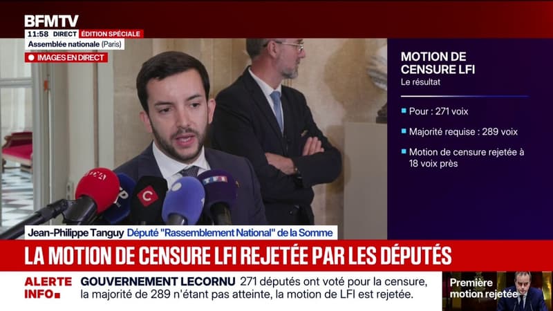 Motion de censure de LFI rejetée: Jean-Philippe Tanguy (RN) dénonce un "pacte de lâcheté consternant"