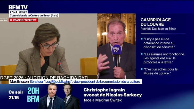 "Ce matin, des collègues qui étaient au Louvre sont sortis choqués du sous-investissement et des conditions dans lesquelles le personnel travaillait", fustige Max Brisson, sénateur Les Républicains, après le cambriolage