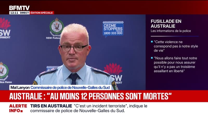 Fusillade à Sydney: "Au moins 12 personnes sont mortes et 39 personnes ont été transportées à l'hôpital, y compris des officiers de police", annonce le commissaire de police de Nouvelles-Galles du Sud