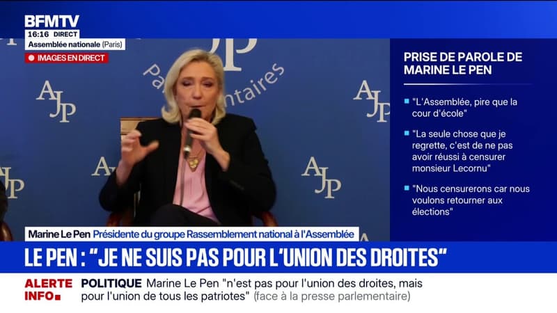 "Je ne suis pas pour l'union des droites", martèle Marine Le Pen, présidente du groupe Rassemblement National