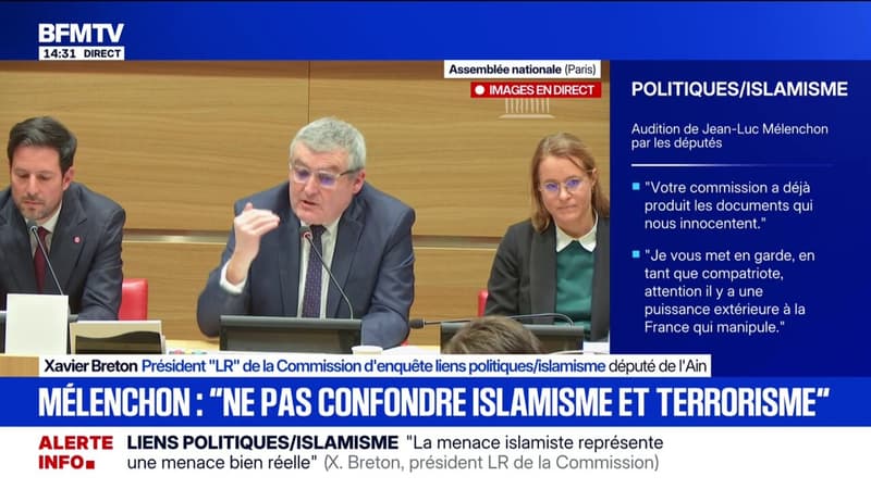 Commission d'enquête sur les liens entre partis et islamisme: "Nous ne confondons pas l'islam et l'islamisme, et nous ne confondons pas islamisme et le terrorisme", déclare Jean-Luc Mélenchon (LFI)